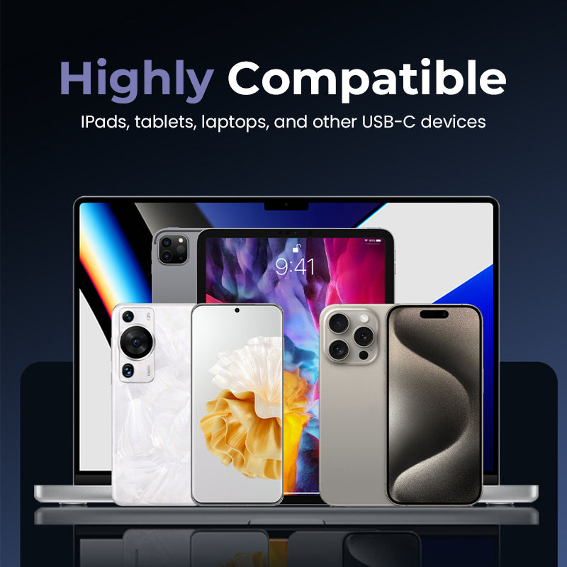 Works with all iPhone models, Samsung Galaxy and any device with a Type-C port. One cable for all your gadgets! -